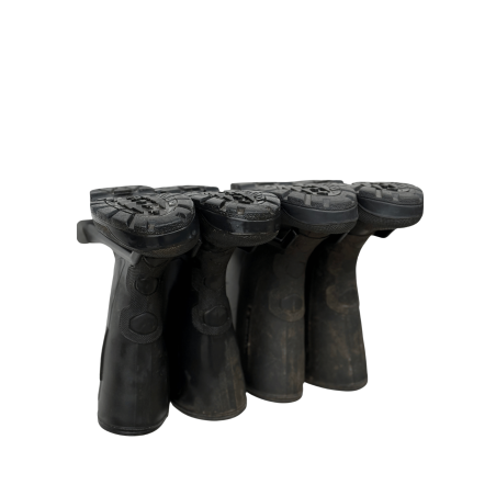 Solidt støvleophæng fremstillet i børstet rustfrit stål og med pinde af genbrugsplast tilsat 30% glasfiber. Støvlerne hænger tæt og godt og fylder således ikke meget. Kan bl.a. anvendes i fødevareindustrien og er særdeles velegnet til skabe, rum og lignende hvor støvler ønskes opbevaret væk fra gulvet.