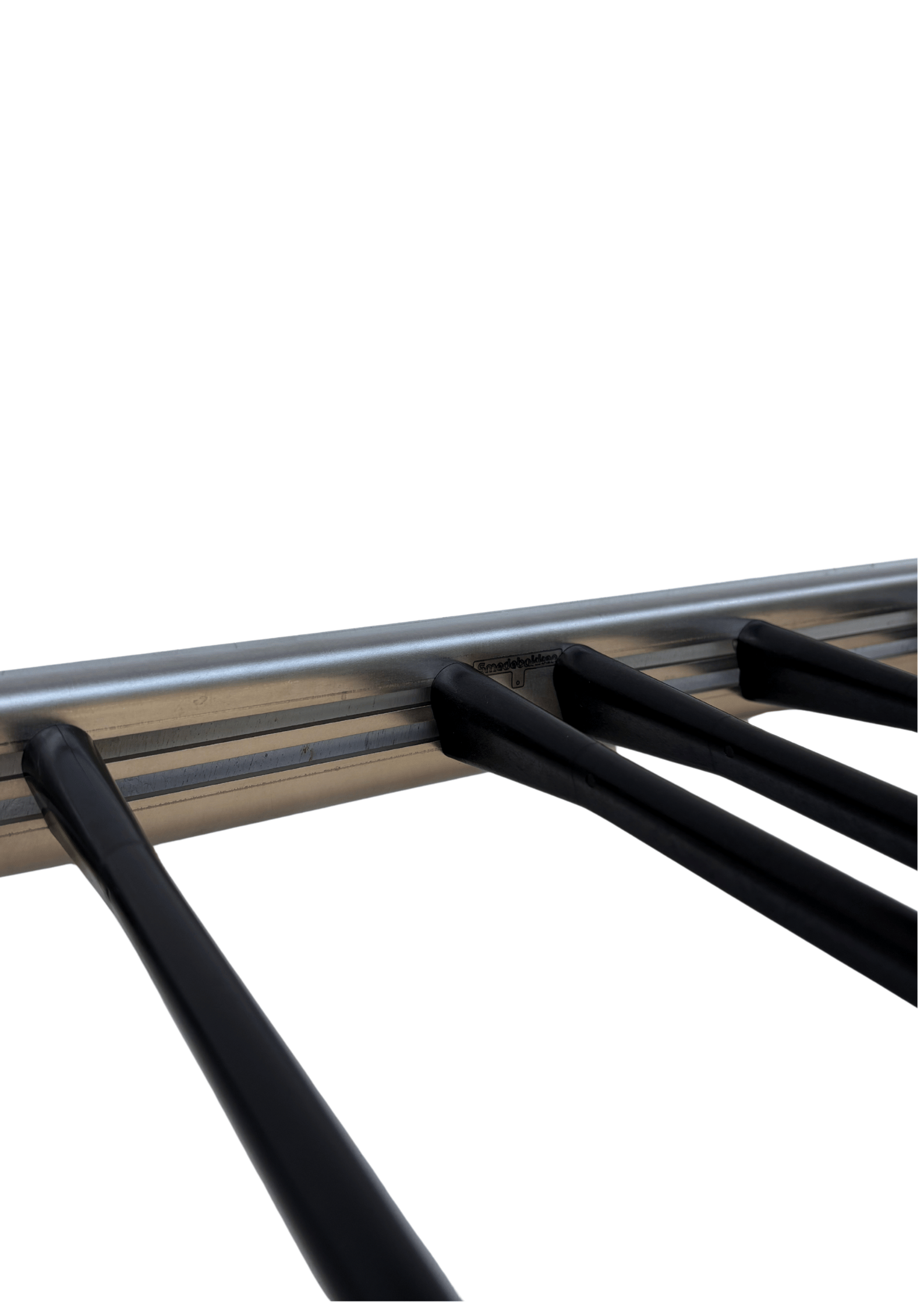 Ligeledes findes skinnesystemet også med en længde på 1480mm og 20 stk. løse kroge (vare nr. 3291) Tænkt således at krogene placeres som man ønsker og spændes helt fast, inden skinnen monteres på væggen. Det er også muligt at fastspænde krogene lige så meget, at de stadigvæk kan forskydes i sporet og dermed er justerbare på skinnen.