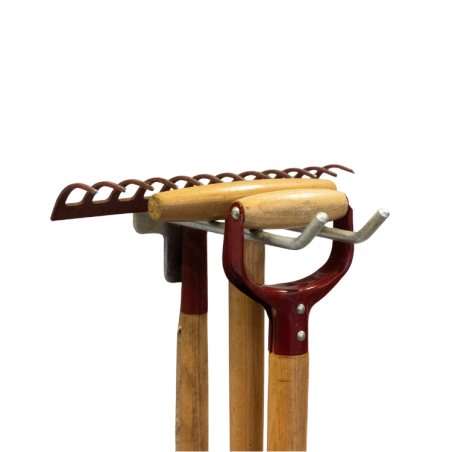 Praktisk redskabsophæng der kan opbevare op til 4 redskaber som skovl/spade, rive, kost samt øvrige redskaber.