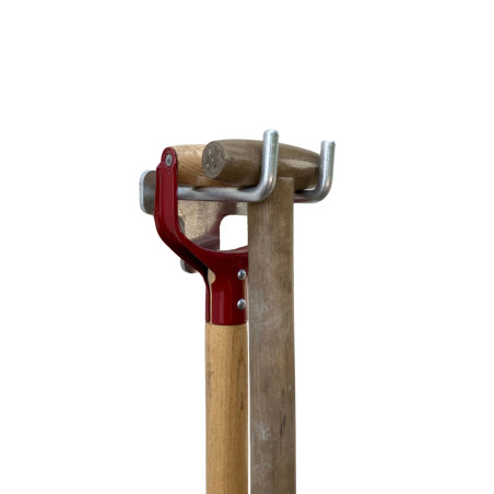 Praktisk redskabsophæng der kan opbevare op til 2 skovle. Det er designet og produceret i Danmark og er af en kraftig kvalitet. Dette gør at det kan opbevare langt de fleste redskaber.
