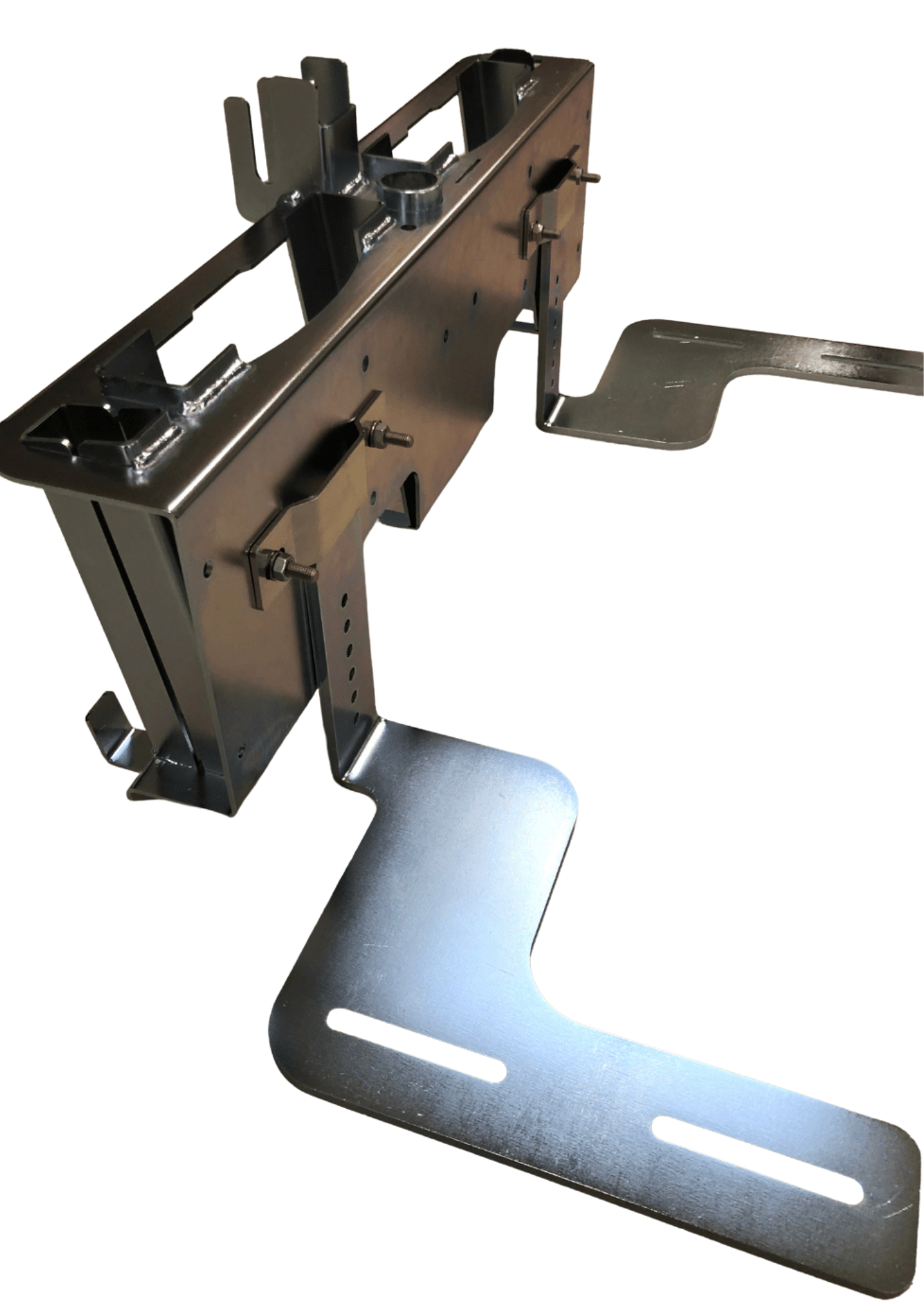 Vangebeslagene er med ovale skruespor så udhængsafstanden ved trinbrættet justerbart. Selve trinbræts redskabsbærerne passer løst ned over de fastspændte vangebeslag, og kan derfor let løftes af hvis der skal bakkes tæt på eller lignende. Justerbar højdeindstilling for redskabsbærer vedhjælp af flytbare bolte. Beslagene er flytbare så flere forskelle boltafstande for vangerne er muligt.